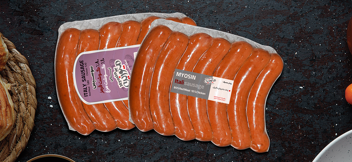سوسیس ایتالی بر پایه 80 درصد گوشت قرمز و 10 درصد گوشت مرغ با نمایش لقمه گوشت قرمز و چربی . سس کچاب استفاده شده در این محصول طعم آن را خاص و منحصر بفرد کرده است. این محصول دارای پوشش طبیعی خوراکی (روده گوسفند) می باشد و به روش طبیعی با 5 نوع چوب درخت میوه هسته دار دودی شده است.